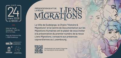 18.03.2026 - 26.03.2026 Lancement public de «Liens Migrations», la revue en ligne de la chaire «Histoire et Migrations» Un partenariat du CDMH avec la Ville de Dudelange et l'Université du Luxembourg